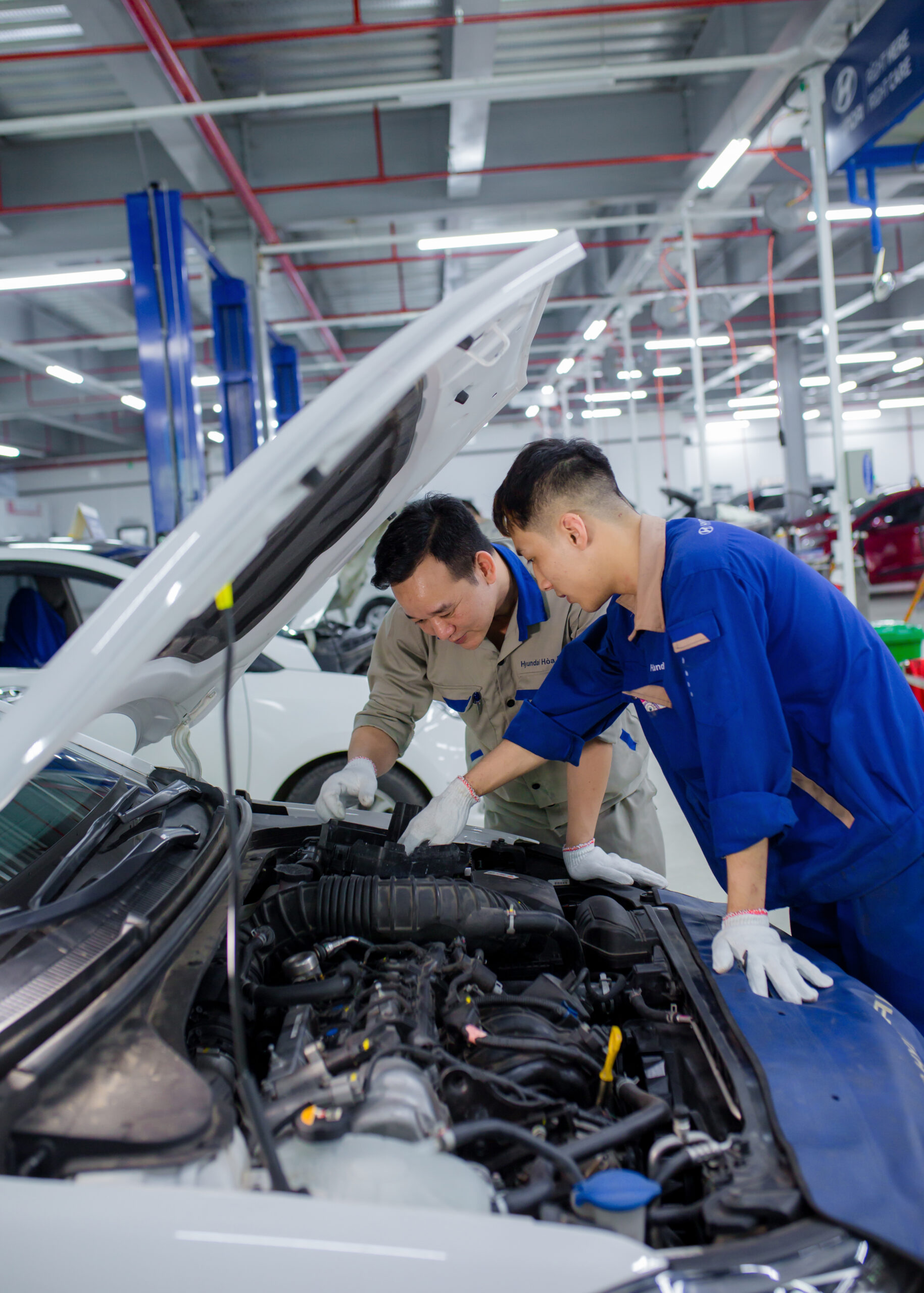Cùng với hệ thống nhà xưởng rộng lớn, trang thiết bị đồng bộ, hiện đại trình độ chuyên môn kỹ thuật, kinh nghiệm và thái độ phục vụ nhiệt tình của các kỹ thuật viên Hyundai Bà Rịa Vũng Tàu được đặt lên hàng đầu. Hiện tại, xưởng dịch vụ của showroom Hyundai Bà Rịa Vũng Tàu có đọi ngũ kỹ thuật viên có tay nghề cao, thường xuyên được đào tạo, thực hành những kiến thức cũng như thiết bị sửa chữa mới nhất và sẽ trải qua nhiều đợt kiểm tra đánh giá theo tiêu chuẩn chính hãng. Đây cũng là những yếu tố tạo dựng giá trị khác biệt của TC MOTOR nói chung và Showroom Hyundai Bà Rịa Vũng Tàu nói riêng trong việc xây dựng và phát niềm tin, uy tín đến khách hàng.